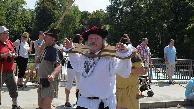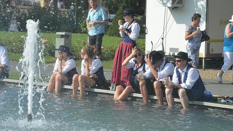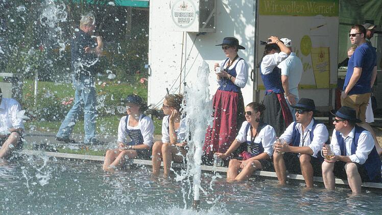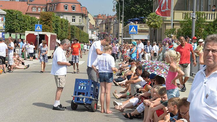 Sowohl für die Helfer wie auch für die Akteure waren entlang der Festzugstrecke Wasser-Stationen eingerichtet, wo man sich im Zweifelsfall noch einmal mit Mineralwasser versorgen konnte. Auf den Wägen und in den Kutschen war ebenfalls Wasser deponiert worden. Erwin Full, der in diesem Jahr als Architekt Max Littmann am Festzug teilnahm, stellte hinterher fest: "Es war gar nicht so schlimm, wie ich befürchtet hatte." Gute Vorbereitung ist eben was wert.