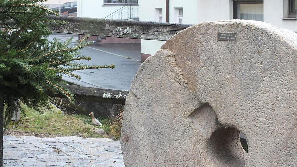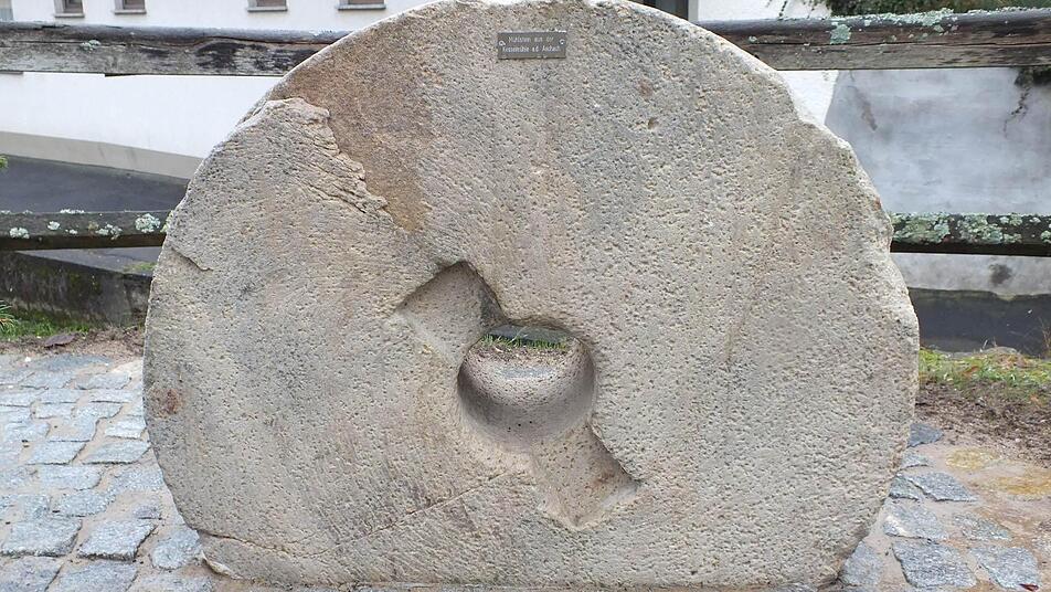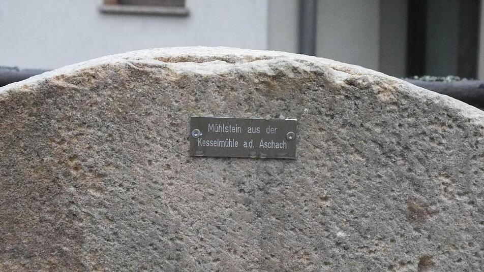 Der schwere, kreisrunde Stein ist in den Boden eingelassen. Eine kleine Metallplatte erklärt, worum es sich handelt: einen Mühlstein aus der Kesselmühle. In der Häfnergasse wurde das Denkmal eingeweiht, das an die 13 Mühlen erinnern soll, die im Gemeindegebiet die Aschach säumten. Mehl sowie Öl wurden damit hergestellt, manchmal auch Flachs gewalkt, um ihn geschmeidig zu machen und für Stoffe verwenden zu können.
