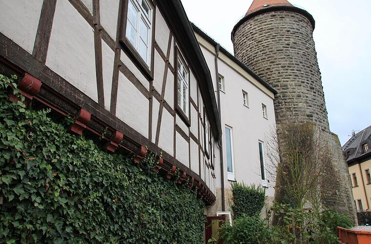 Typischer Mürschter Putz Pater Jeremias Kiesl zeigt auf eine schwarz gesprenkelte Schicht. Die sei typisch für Münnerstädter Mauern in einer bestimmten Zeit, hat er sich sagen lassen. Stefan Lochner betont, dass es sich um einen Renaissanceputz um die Zeit von 1500 handelt, den man in Münnerstadt finden kann. Festlegen möchte er sich allerdings nicht, ob es sich bei der Mauer tatsächlich um Reste der ehemaligen Stadtmauer handelt. Er zweifelt da. Doch unbestritten ist, dass das Mauerwerk sehr, sehr alt ist und die Stadtmauer einst in diesem Bereich verlaufen ist.