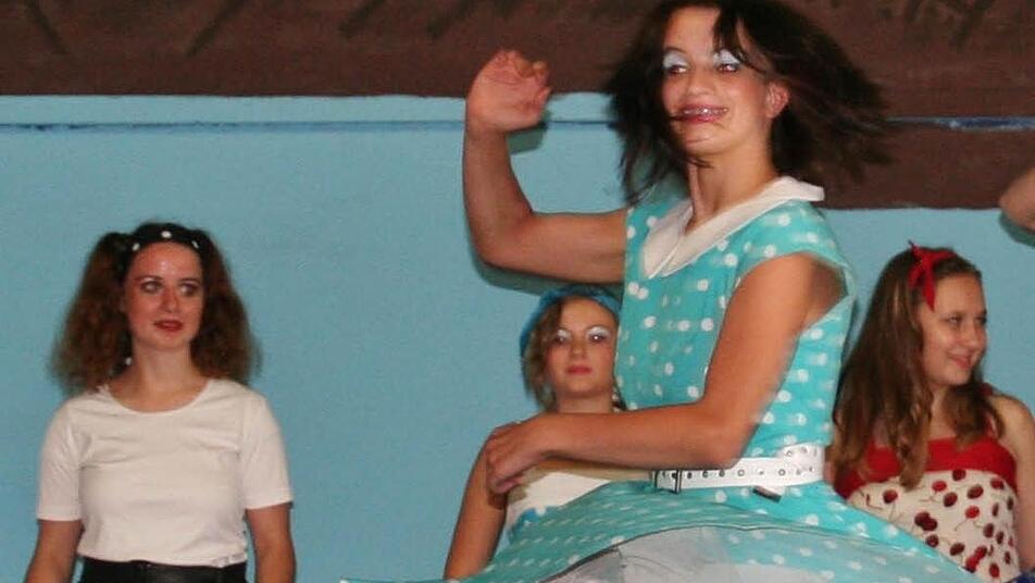 Alles erinnerte jetzt in der Nüdlinger Schlossberg-Volksschule an das Jahr 1963. Denn vor 50 Jahren war die Bildungseinrichtung entstanden. Petticoats, Elvis Presley und alte Kinderspiele wurden wieder zum Leben erweckt.