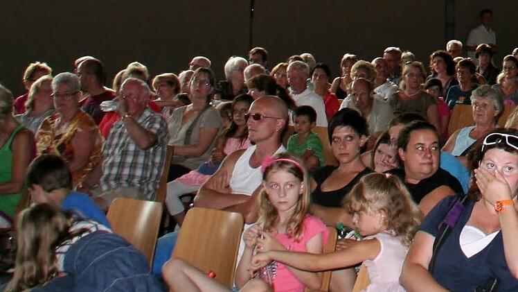 Passend zur Hintergrundbemalung der Bühne sang die 5. Klasse ein Liedermedley. Mit einem Gedicht und dem Zauberlehrling Rap als Chor endete die Präsentation in der Turnhalle, und die Besucher strömten zurück in den Schulhof, wo die Nüdlinger Gruppe "Vollblech" mit Swing und Oldies für einen heiteren Sommerabend sorgte.