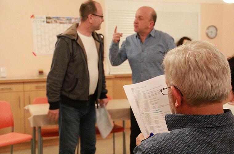 "Das Stück haben wir gemeinsam ausgewählt", sagt Anton Büchs, der Spielleiter. "Ich treffe zunächst eine Vorauswahl, dann lesen einige Mitspieler Stücke aus der Auswahl." Erst danach werde eine gemeinsame Wahl getroffen. "Anfangs sieht mancher das Stück noch kritisch - erst im Verlauf der Proben ändert sich das."