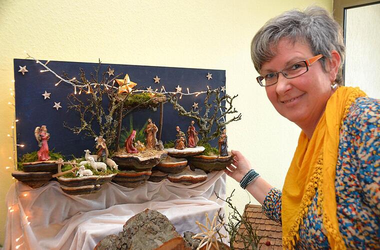 Bei der Suche nach Krippenfiguren im Internet stieß sie dann auf eine "Schwammerlkrippe", wie Krippen aus Baumschwämmen in Oberbayern gern genannt werden.