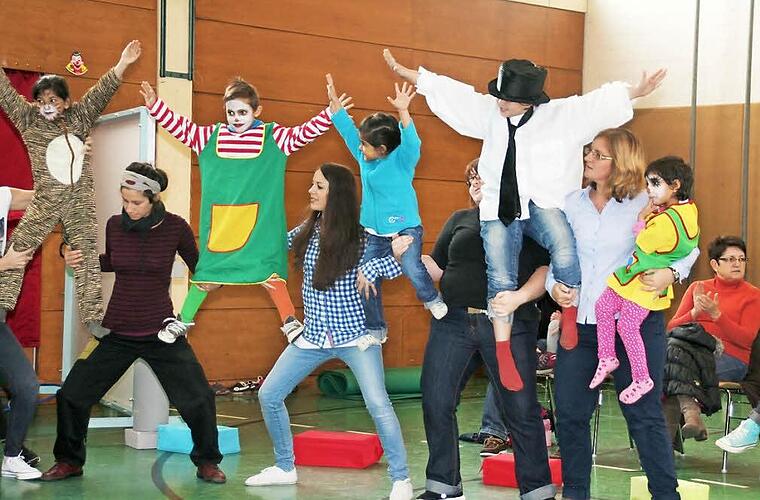 Den Zuschauern hat es Riesenspaß gemacht, die Kinder fröhlich und unbeschwert zu erleben, die Eltern sparten nicht mit Beifall, auch wenn mal ein Zaubertrick danebenging, oder die Choreographie beim gemeinsamen Seilhüpfen nicht ganz perfekt gelang. Die Schülerinnen und Schüler gaben Hilfestellung, wo sie nur konnten. Wenn ein Kind aber, vielleicht beeindruckt vom Rampenlicht die Manege verließ , um auf den Schoß der Eltern zu klettern, dann fiel die Nummer