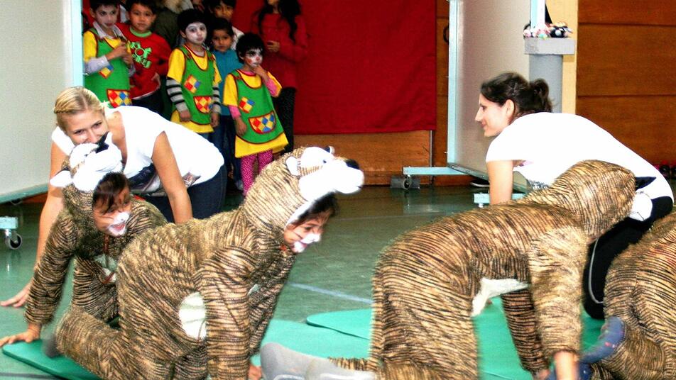 ein kleines Zirkusprogramm zusammengestellt und mit den Kindern im Asylantenheim eingeübt. Am Samstagvormittag war es dann soweit und sie konnten ihr Projekt in der Schulturnhalle Ebenhausen vorstellen. Lehrerin Belinda Böhm sprach von einem schwierigen Projekt, das allen Beteiligten einiges abverlangt habe. Die Verständigung war nicht das Hauptproblem: "Die Kinder lernen schnell, Deutsch zu verstehen" meint die Pädagogin. Schwieriger war, Zugang zu ihnen zu finden.