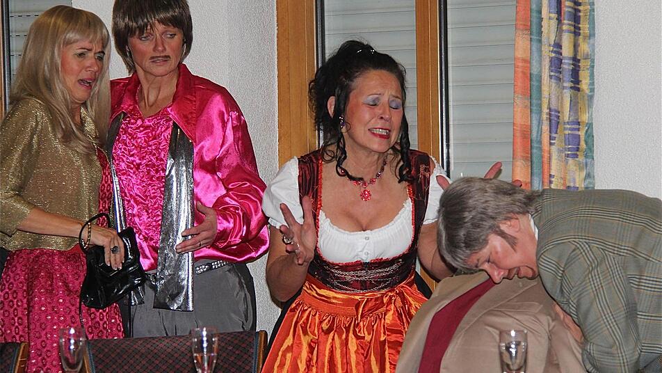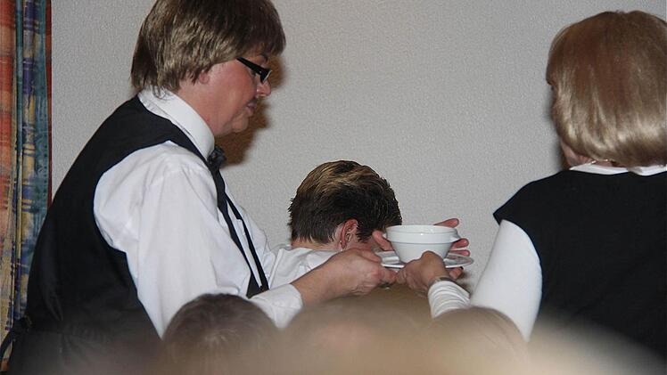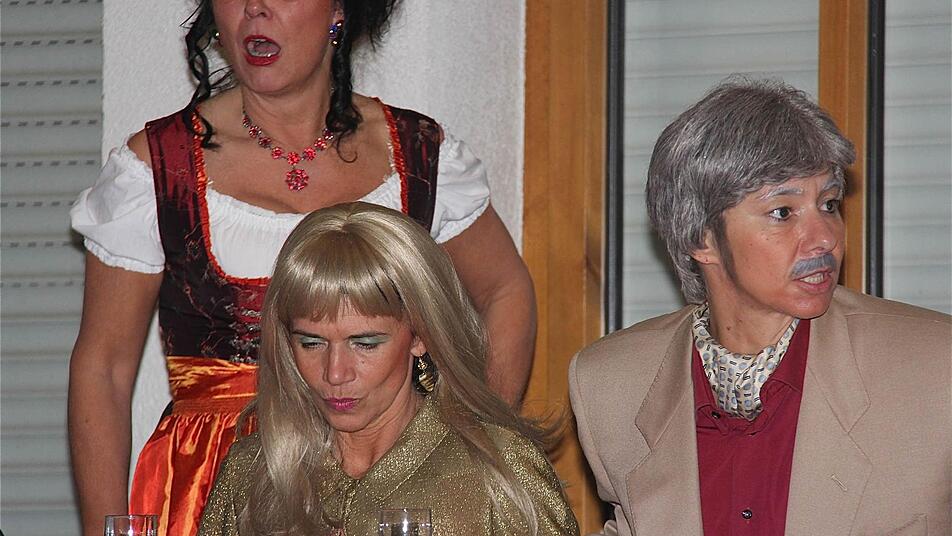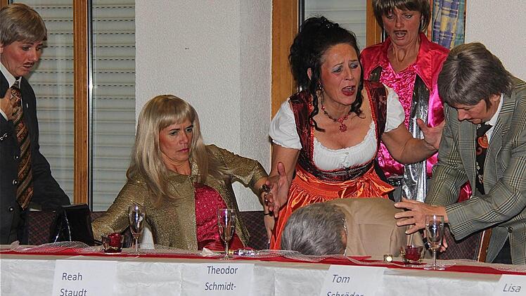 An drei Abenden nahmen jeweils rund 60 Gäste an den Tischen im Pfarrsaal ihre Plätze ein und genossen die Kombination von leckerem Essen und Trinken mit einer Kriminalkomödie. Die kulinarischen Grüße aus der Giftküche waren nach dem eingangs zum Sekt gereichten Brot mit Gerupftem und Schmalz das "frängische Henkersüpple", der "Mörderteller à la Kümmi" und als krimineller Nachtisch der "blutige Traum". Bei Mostsuppe, Meerettich-Schnitzel mit feinen Gemüsen und verführerischer Süßspeise von gedickten Sauerkirschen mit Mascarpone und in Zucker gerösteten Mandeln gab es die hinreißend komischen Auftritte der Kümmidamen zwischen den Gängen.