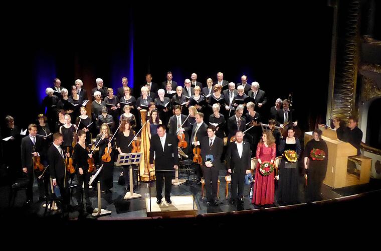 In Vorspielen, Überleitungen, als Verstärkung des Continuo und des Chores musizierte ein leider im Programm nicht namentlich gewürdigter Organist mit großer Leidenschaft am Orgelpositiv auf der Orchestergrabenabdeckung (was die Geräusche der Pedale manchmal unangenehm verstärkte).