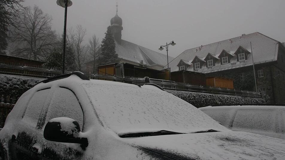 Null Grad. Gefühlt sind es minus fünf. Der Wind pfeift über den Kreuzberg. Schnee fegt durch die Luft, wird von den Windböen verwirbelt und peitscht einem ins Gesicht. Unten im Tal, in Bad Kissingen, ist noch nasskalter Herbst, hier oben auf 900 Meter Höhe hat am Donnerstag der Winter Einzug gehalten. Seit dem frühen Morgen hat es geschneit.