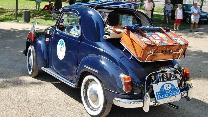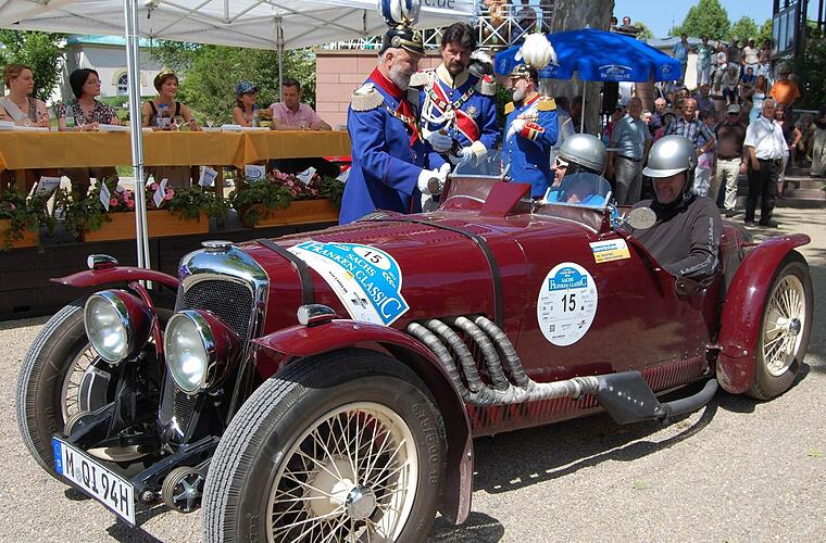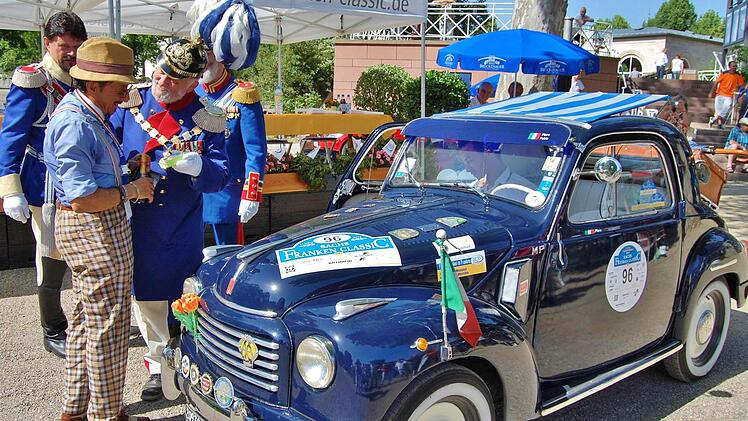 Besonders bei Rallye-Stammgast Pietro Messina aus Dittelbrunn kam diese freundliche Geste so gut an, dass er als einziger Fahrer spontan seinen engen, 66 Jahre alten Fiat Topolino C verließ, um Jury und Majestäten mit Handschlag zu begrüßen.
