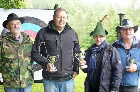 Sieger wurden die Schützen, deren Pfeile die geringste Abweichung zur goldenen Mitte der Scheibe aufwiesen. Hier entschieden Millimeter. Elke Fries kam dem Zielpunkt am nächsten, bei ihrem Pfeil wurde lediglich ein Abstand von 38,1 Millimetern zur Mitte gemessen. Den zweiten Platz belegte Roland Müller, der den Mittelpunkt nur um 53,8 Millimeterverfehlte. Er darf sich nun Little John nennen. Rang 3 sicherte sich Helmut Hofmann aus Westheim. Bei seinem Pfeil wurde eine Abweichung von 60,5 Millimetern ermittelt. Das brachte ihm den Namen Bruder Tuck ein.