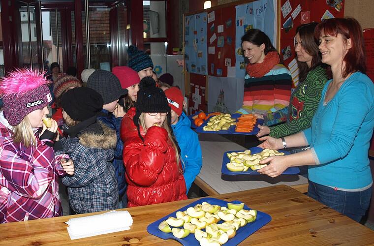 Und die Mädchen und Buben waren begeistert über frisches Obst und Gemüse, das sie künftig neben dem seit Jahren bewährten gesunden Pausenfrühstück zusätzlich monatlich genießen dürfen.