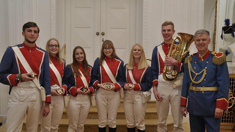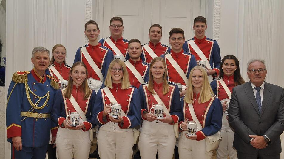 Sahnehäubchen war natürlich der Auftritt des Hauptorchesters. Nicht nur eine Augenweite in ihren feschen Uniformen, sondern ein ansprechender Klangkörper, der es versteht, emotional zu begeistern. Selbstverständlich fehlte auch der übliche Sketch der Musiker nicht, in der Robin Hillenbrand als Showmaster, Eva Brand als Ehrengast und Fabian Rottenberg als Dirigent den Taktstock an sich zur Begeisterung des Publikums auf die Schippe nahmen. Robin Hillenbrand ist ein "alter Hase" beim JMK. Als mitreißender und Comedy erprobter Moderator wurde er zum Abschluss des Sketches ganz ernst und sagte, wobei er allen jungen Musikern aus dem Herzen sprach: "Wir vom JMK möchten allen Eltern und Großeltern danken, dass ihr uns zur Musikschule, zum Jugendmusikkorps gefahren habt. Ohne euch wären die vielen Proben und Auftritte im vergangenen Jahr nicht möglich gewesen." Bürgermeister Thomas Leiner (CSU) als Vertreter von OB Kai Blankenburg lobte die Veranstaltung mit den Worten: "Es stimmt, das Elternkonzert ist das schönste Konzert des Jahres." War der Auftritt ihrer Kinder schon ein gefühlsbetonter Höhepunkt, so wurde es für einige der jungen Musiker zu einem emotionalen Tiefpunkt. Lange Jahre boten ihnen das JMK und ihre Kollegen Freundschaft und Heimat. Jetzt mussten sie aufgrund von Studium oder Ausbildung dem Korps den Rücken zukehren. Mit dem Ehrenkrug des JMK wurden verabschiedet: Eva Brand, Anna-Lena Back, Kristina Back, Antonia Grob, Anna-Sophia Karch, Milena Koch, Johanna Leirich, Julia Belz, Max Arnold, Felix Back, Ferdinand Kässner, Moritz Memmel und Fabian Rottenberger. Auch wenn diese Leistungsträger des JMK"s verabschiedet wurden, so wollen sie als "Reservisten" dem Korps auf Abruf weiterhin zur Verfügung stehen. Ein Laie mag nicht erahnen, was man als Musiker innerhalb von zehn Jahren für Auftritte und Leistungen erbringen muss. Viele tausende Stunden gehen für Proben, Fahrten, Einsätze und sonstige Aufwendungen für die Musik von der Freizeit ab. Daher ist das Ehrenkettchen des Musikkorps eine kleine Anerkennung für die erbrachten Leistungen. Ausgezeichnet wurden: Antonia Kopp, Laura Schwing, Karina Schwing, Julia Belz, Robin Hillenbrand, Jan Matejsek, Tom Rahm, Konstantin Schmitt und Tillmann Joob. Elternkonzert ist das schönste Konzert im Jahr? Ja, es stimmt. Auch Außenstehende können sich von dem Feeling einfangen lassen - es kostet keinen Eintritt und jeder ist willkommen. Der Druck auf die Tränendrüse ist aber nicht zu verachten.