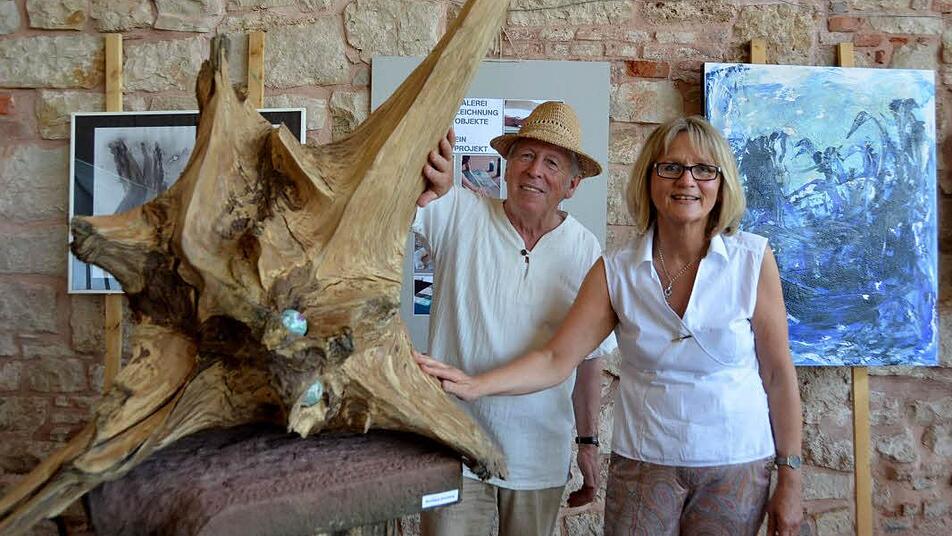 "Sterbender Flugsaurier" nennt Norbert Klodwig sein Werk aus einer riesigen Wurzel, die er im Spessart fand und die nun auf auf einem abgestorbenen Hainbuchenstamm aus der Rhön thront. "Für mich fängt das nächste Jahr schon jetzt an, denn meine Kunstwerke haben einen langen Weg." So muss er Wurzeln, Zweige und größeres Totholz erst einmal finden, bevor er sie in seinen Installationen zu neuem Leben erweckt.