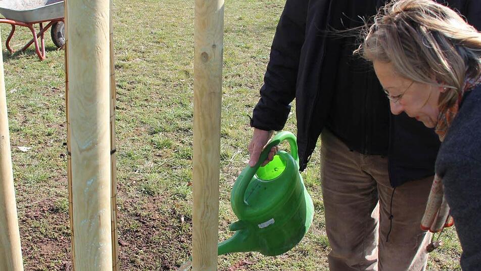 Inititiator der Aktion, seinem Amtskollegen, dem 2. Bürgermeister Reimar Glückler (CBB). Auch an Georg Pabst, den Leiter der gärtnerischen Abteilung der Stadt Hammelburg, ging sein Dank. "Seit drei Tagen wurde hier für die Erweiterung des Familienwaldes kräftig gearbeitet", so Stross.