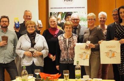 Im Zentrum des Abends stand der Festvortrag von Arno Wielgoss zum Thema: "Bittere Schokolade - Fairness und Ökologie in der Kakao-Wertschöpfungskette". Der gebürtige Nüdlinger vom Verein Frederic - Hilfe für Peru sensibilisierte die Zuhörer einmal mehr mit bitteren Fakten über die Zusammenhänge von ökologischen Bedingungen in den Erzeugerländern und den vielfältigen Auswirkungen der globalen Marktgesetze am Beispiel Kakao. Gleichzeitig versprühte der Gründer von Perú Puro ungebremsten Optimismus. Mit seiner Firma produziert der Tropenbiologe, der sich auf ökologische Landwirtschaft spezialisiert hat, Bio-Edelkakao und Gourmet-Schokolade aus der Wiege der Kakaobohne, im Regenwald des Urubambatals in Peru. In den bundesweiten Weltläden sind diese Produkte längst kein Geheimtipp mehr. "Inzwischen können wir den Bauern unserer Kooperative Preise zahlen, die noch über dem Fairtrade-Niveau liegen", sagte Wielgoss stolz. Und in Nüdlingen, wo alles begann, schließt sich der Kreis wieder: "Die Verpackung für unsere Produkte wird in der Lebenshilfe-Werkstatt hergestellt."