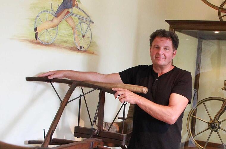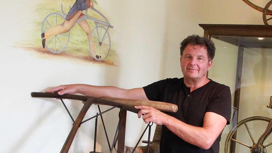 Neben dem Hof hat Museumsleiter Ivan Sojc einen Parcours angelegt. Wer es wagt, soll sich fühlen können wie ein deutscher Pionier. Was aussieht wie ein Barfußpfad, gibt einen Eindruck davon, wie es war, vor 200 Jahren mit dem Vorläufer des Fahrrads unterwegs zu sein, erklärt der 54-Jährige. Museumsbesucher sollen sich auf den Sattel einer wegweisenden Erfindung schwingen und spüren, dass die Wege damals mit dem Straßenbelag eines modernen Radwegs nichts gemein haben. Der Grund für den ganzen Aufwand: eine Maschine, die die Welt verändern sollte.