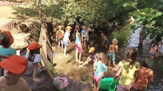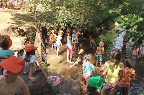 Dort durften sich die kleinen Theaterfreunde dann erst mal so richtig austoben. Die Vorräte aus dem Rucksack waren schnell geplündert, und dann zog der nahe Mühlbach die Kinder magisch an.
