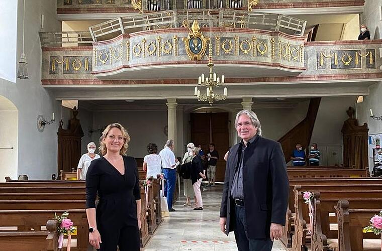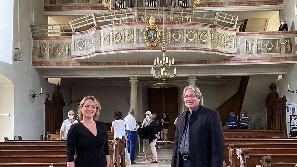 Auf den ersten Blick - und das wäre schon bedeutsam genug - war es der Abschluss des 10. Rhöner Orgelsommers, der in diesem Jahr corona-bedingt vom Umgang her reduziert werden musste. Regionalkantor Peter Rottmann und die Sopranistin Yvonne Düring hatten zu einem Konzert in die Wallfahrtskirche Mariae Heimsuchung (oder auch Mariae, Trösterin der Betrübten) auf dem Findelberg bei Saal a. d. Saale geladen. Aber tatsächlich war es viel mehr: Es war die Feier der Auferstehung der wunderschönen Orgel in der Kirche, die nach einer Sanierung zum ersten Mal in ihrer ganzen Pracht zu hören war.