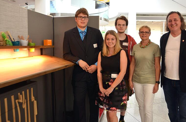 Alle drei werden mit ihren Gesellenstücken, einem Schreibtisch, einer Wandpaneele mit verschiebbaren Elementen und einer Kommode mit Intarsien auch beim Bezirksentscheid der "Guten Form" im kommenden Monat in Würzburg antreten.