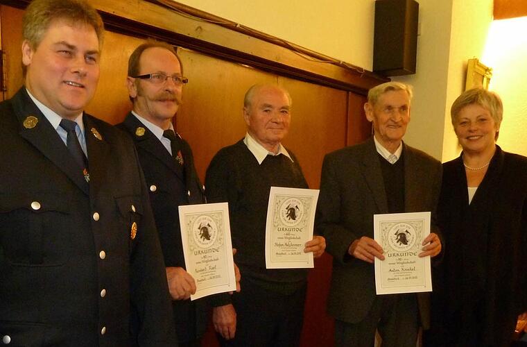 Sie ist mit Fahnenabordnungen bei Prozessionen und dem Volkstrauertag präsent. Traditionell stellt die Feuerwehr den Maibaum auf. Vorsitzender Enrico Kröckel und Kommandant Bernd Müller blickten bei der Jahreshauptversammlung eher zufrieden auf 2012 zurück. Endlich habe man das neue Einsatzfahrzeug,TSF-W übernehmen können. Dessen Übergabe und Weihe wurde an einem Mai-Wochenende gefeiert. Die Freiwillige Feuerwehr zähle derzeit 38 Aktive, darunter drei Frauen, wie Müller ausführte. Die Jugendarbeit gebe Anlass zu Hoffnungen. Zu den Anwärtern zählen 14 Jugendliche, darunter acht weibliche und sechs männliche, die bei Wettbewerben gut abschnitten.