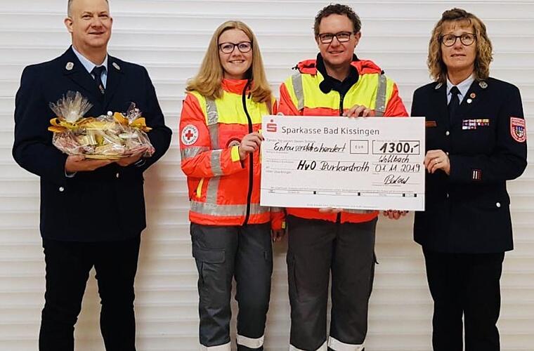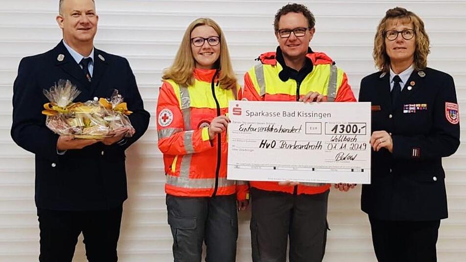 Erneut unterstützt die Freiwillige Feuerwehr Wollbach e.V. die Helfer vor Ort Gruppe Burkardroth mit einer großzügigen Geldspende. Aus dem Erlös der Kirmes in Wollbach vor einigen Wochen, welche heuer von der Feuerwehr Wollbach ausgeführt und organisiert wurde, spendeten die Organisatoren 1300 Euro an die HvO Gruppe. "Das Schöne ist, dass das Geld in der Marktgemeinde eingesetzt wird", sagte die Vorsitzende der Feuerwehr Wollbach Birgit Below. Ihre Tochter Natascha Below und André Schmitt nahmen dankend den Scheck an. Dafür bedankten sich die beiden auch beim 1. Kassier Matthias Wehner mit einem Geschenk.