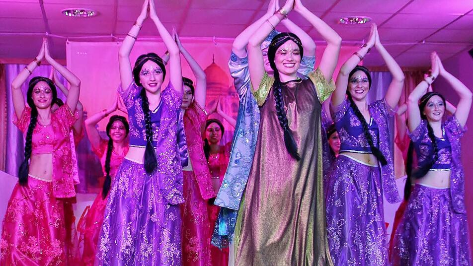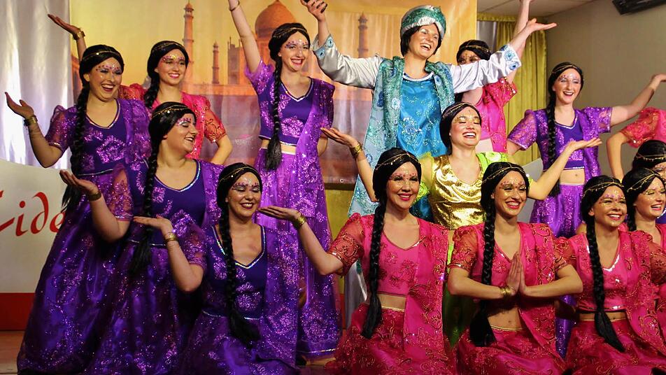 Der Jubel der Damen hingegen schlägt dem Männerballett entgegen. Die Burschen hatten sich als Engelchen mit Heiligenschein brav gegeben, brachten dann aber doch die Bretter zum Erzittern und die Mädchen zum Kreischen. Es folgt eine Glanznummer von Stadtrat Klaus Bollwein als singen- und tanzender Mambokönig mit der brillant spielen- und singenden Birgit Schreiber als Hermann und Mathilde aus dem fränkischen Fasching. Gekonnter Kontrastpunkt dazu: Die Faszination fremder Kulturen waren nicht nur für die Zieglers vom "Breiten Rasen" berührender Höhepunkt der Sitzung. Elfenhaft schwebende Schatten, intensive Farben, Frauen in langen Gewändern zu indischer Musik.