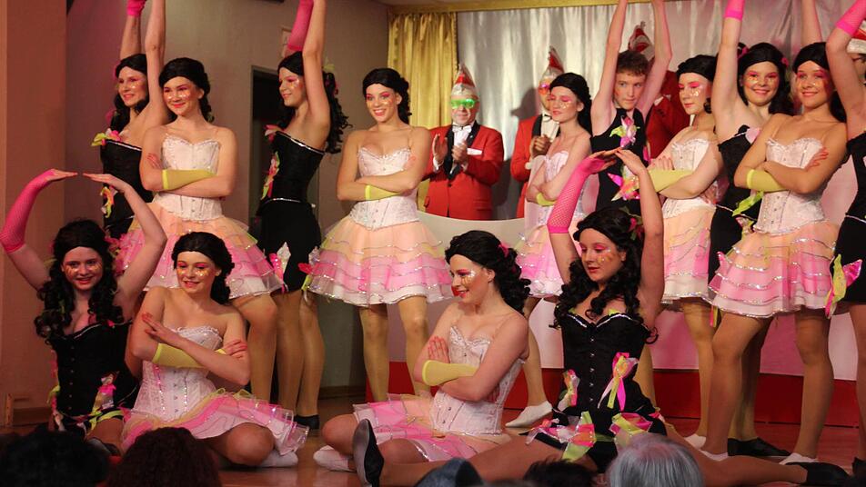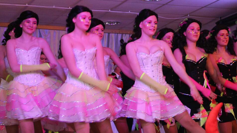 Die Prunksitzung der Reiterswiesener Narren ist was zum Hingucken. Ein getanztes, quirlig buntes Kostümfest mit vielen schönen Frauen, kernigen Männern und lustigen Einfällen. Zuerst dominiert rot: Die Herren des Elferrats marschieren in karmesinroten Dinnerjackets ein, Prinzessin Lisa I. von Linsenspitz erscheint anmutig in pailettenbestickt-zinnoberroter Robe und die Prinzengarde wirbelt in edlem Rubin. Soll heißen: hier wird's feurig.