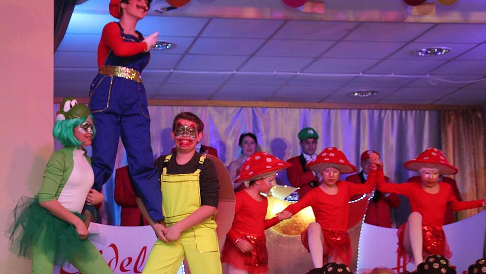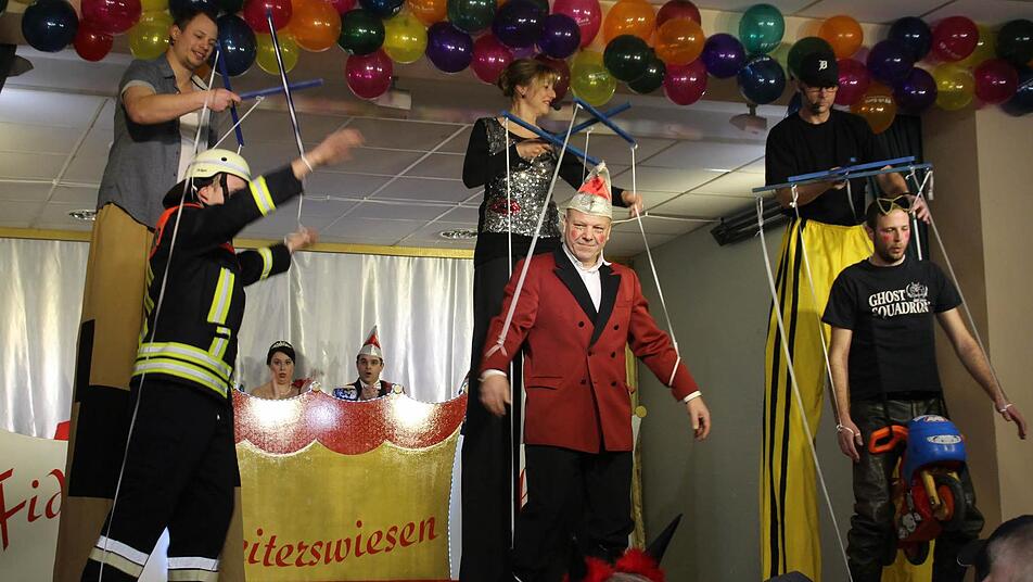 Standesgemäß und gekonnt wie immer, die Prinzengarde mit ihrem Gardetanz. Die Showgruppe um die Großfamilie Kleinhenz lässt sich immer etwas Originelles einfallen: Diesmal haben die Stelzenläufer ihre Puppen an den Fäden tanzen und das Publikum jubeln lassen.