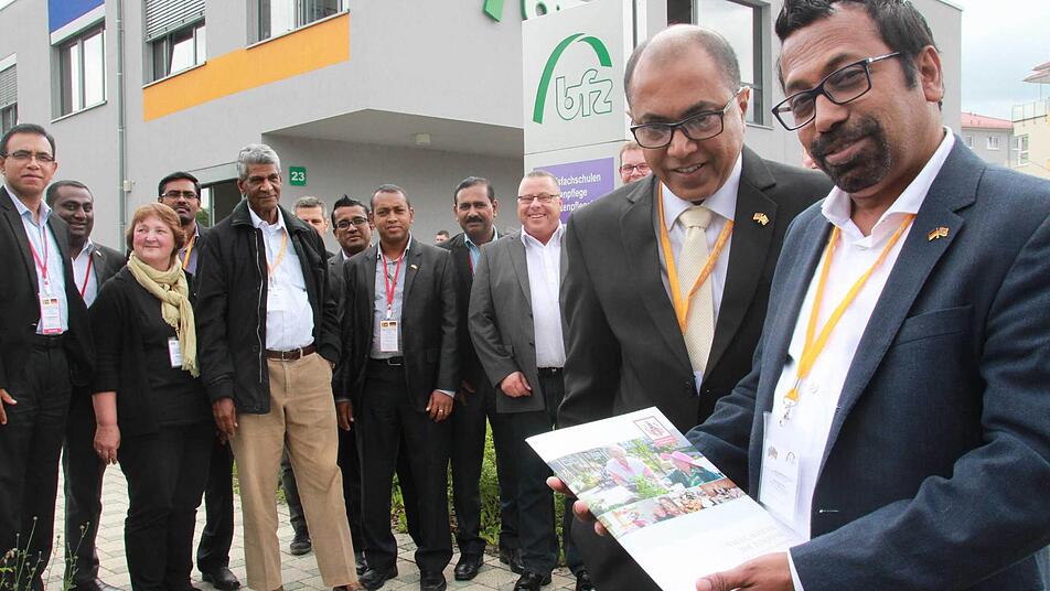 Eine Delegation aus Sri Lanka hat sich im beruflichen Fortbildungszentrum (bfz) in Bad Kissingen über Pflegeberufe informiert. Wie werden Pflegestufen unterteilt, wie steht es um die Ausstattung der Pflegekräfte, wie sieht die Pflege für Demenz-Kranke aus - bei einer Begegnung in der bfz-Berufsfachschule in der Columbiastraße bekamen die Männer aus Fernost Antworten.