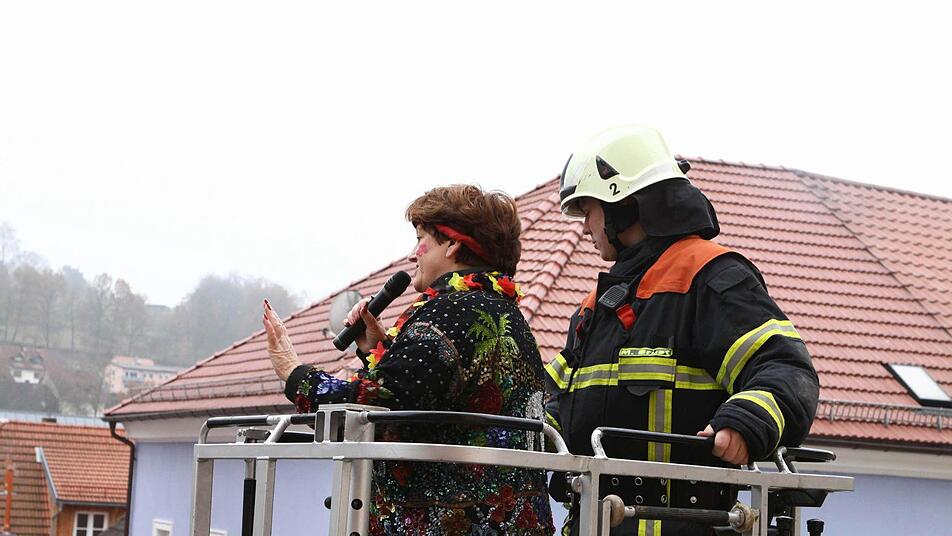 Als Ausgleich für die Übergabe der ehemaligen Bürgermeisterin aus den rettenden Händen der Feuerwehr an die Karnevalisten versprach Seban den Feuerwehrleuten, bis Aschermittwoch die Drehleiter auf Hochglanz zu putzen und die Tanzgarde im Dirndl beim nächsten Feuerwehrfest tanzen zu lassen. Schlussendlich gab es für alle Beteiligten nur "Love" und "Peace", was beim traditionellen Umtrunk im Rathaus dann noch ordentlich gefeiert wurde.