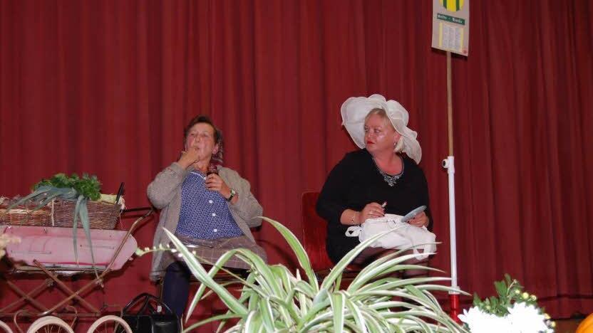 Für gute Unterhaltung sorgten auch die Sketche. Aus Frankenbrunn waren die beiden Frauen Lotte und Gudrun Fröhlich mit ihrem spaßigen Vortrag " Mir hätte so gern en Mo, worüm nur will kener ou uns nou" gekommen. Viel zu Lachen gab es beim lustigen und originellen Auftritt der Euerdorfer, die Fra vom Laand Irmgard Neumann und die auf getakelte Städterin Alexandra Büttner. Ein Sketch ohne Worte an der Bushaltestelle. Hier bestätigte der Moderator Hubert Schenk "Man hat viel gesagt ohne zu reden". Auch die Vorstandschaft des Kreisverbandes beteiligte sich mit einem lustigen Beitrag. Ihr Chef aus München (Markus Stockmann) suchte verzweifelt das intelligenteste Mitglied im Kreisverband. Immer wieder scheiterte es an der Frage, wie der Fachausdruck für die Türkische Nelke, dem Stinkerle oder der Studentenblume heißt? Weder die Sophie aus Kühhornshausen (Ingrid Müller), noch die Faseles-Königen des Landkreises (Angelika Somaruga), wie auch die Ludmilla (Marianne Müller) wussten die richtige Antwort. Nur die Kreisvorsitzende Irmgard Heinrich, wie könnte es auch anders sein, kam schließlich auf die richtige Antwort "die Tagetes".