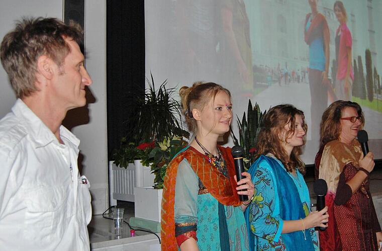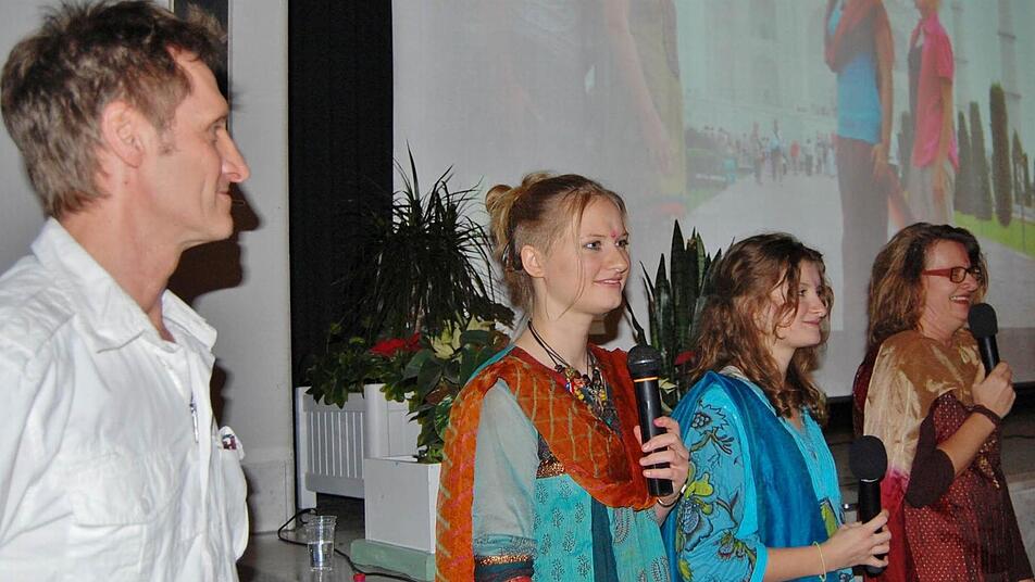 Tochter Ina moderierte den Abend fröhlich und unbekümmert in dem Bewusstsein, als Zwanzigjährige weit mehr erlebt zu haben als die meisten im Saal. "Indien ist laut, es stinkt, ist eine einzige Baustelle und voller Menschen", brachte sie, landestypisch gekleidet mit indischem Sari und mit Flip-Flops an den nackten Füßen, die Eindrucksvielfalt auf den Punkt. "Aber wir lieben es." Munter erzählte sie drauf los, manchmal augenzwinkernd, manchmal etwas zynisch. "Das wichtigste Teil am Auto ist in Indien die Hupe." Oder: "In der Stadt laufen mehr Tiere herum als bei uns auf einem Großbauernhof." Und noch eine Erkenntnis brachte sie mit zurück in die Rhön: "Papa kam mit dem Chaos nicht klar."