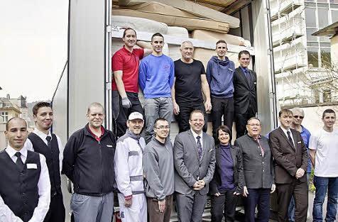 Fünf Stunden lang schuftete ein Dutzend starker Männer des Hotels, um die beiden Lastwagen mit 370 Matratzen, 4000