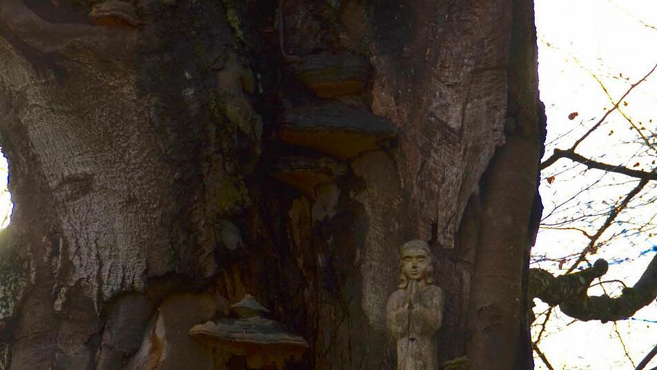 Bleibt die Frage, was es mit der Marienfigur auf sich hat, die am Stamm der Hutbuche zu sehen ist. "Wer die geschnitzt hat, ist nach wie vor nicht bekannt", sagt Metz. Zwar gebe es im Dorf verschiedene Vermutungen, dennoch weiß man nichts Genaues.