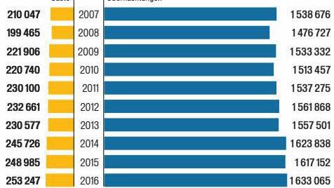Die höchste Gästezahl seit Aufzeichnungsbeginn und die meisten Übernachtungen seit 20 Jahren meldet die Staatsbad GmbH für das Jahr 2016: Die Anreisen stiegen im vergangenen Jahr um 4262 oder 1,7 Prozent auf 253 247. Bei den Übernachtungen gab es nach einem leichten Rückgang im Vorjahr heuer ein kleines Plus von 15 913 in der vorläufigen Statistik. Exakt 1 633 065 Mal waren die Betten in Bad Kissingen belegt, Nachmeldungen könnten diese Zahl sogar noch erhöhen, teilt die Staatsbad GmbH mit.