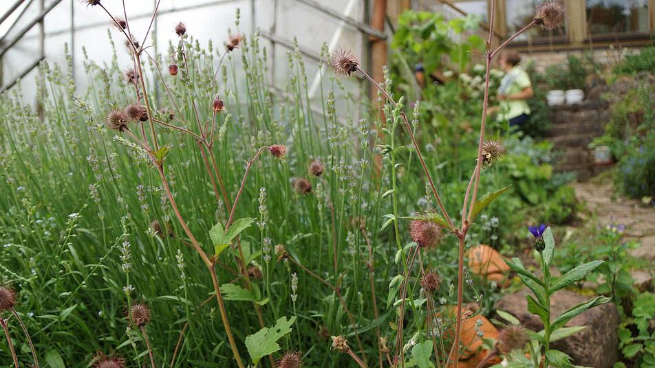 einem ausrangierten Fleischwolf hat sich eine sonst auf Steinen beheimatete Pflanze eingenistet. "Bei jedem Besuch ist man überrascht, es gibt immer etwas Neues zu entdecken. Man kann sich in dem Garten viele Inspirationen holen", sagt Nachbar Albrecht Zisler.