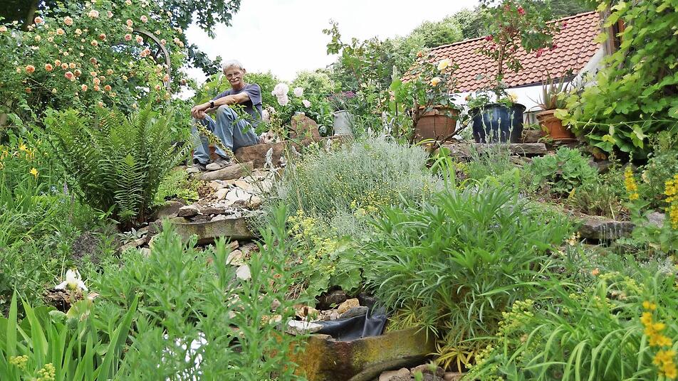 Wie viel Mühsal im Garten von Bruno Vierheilig steckt, kann sich jeder Besucher leicht ausmalen. Er muss nur auf die unzähligen Steine achten. "Die habe ich alle selbst in Ramsthal gesammelt", sagt Vierheilig. Die Steine sind keine reinen Dekorationsgegenstände. Sie stützen und befestigen den Garten.