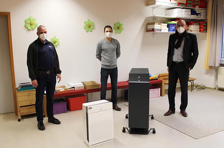 Der Kindergarten in Aschach hat zwei Luftreinigungsgeräte bekommen. Die unterschiedlichen Geräte arbeiten zusammen gegen Bakterien und Viren wie Corona oder Influenza, das eine mit UV-Licht, das andere mit Filter.