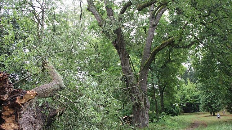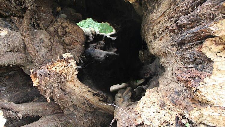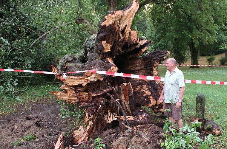 Der Gewittersturm am Dienstagabend hat im Münnerstädter Hindenburgpark die Hohle Linde, einen uralten Baum, zu Fall gebracht. Ganze Kindergenerationen haben sich im Innern des Baumes versteckt, haben dort gespielt. Nun liegt der mächtige Stamm am Boden. Der starke Wind hat ihn einfach umgeworfen.