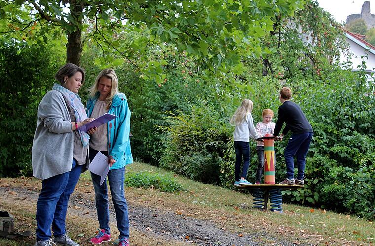 Ulrike Kiesel und Jessica Wolter vom Bad Kissinger Familienbeirat haben ihre Kinder mitgebracht auf den Spielplatz an der Ritterstraße. Die etwas größeren Sprösslinge haben heute als Spielplatztester eine wichtige Aufgabe. Die Acht- bis Elfjährigen haben durchaus ihre eigene Meinung. "Äktschen ist wichtig", meint Emilie. "Rennen, verstecken, klettern", ergänzt Benedikt. Die Mamas notieren das auf dem Testbogen, halten dazu ihre eigenen Eindrücke fest.