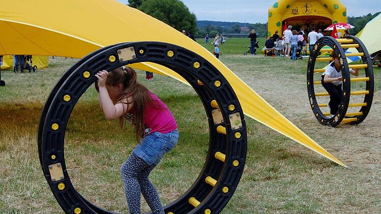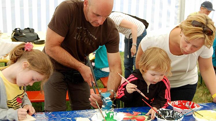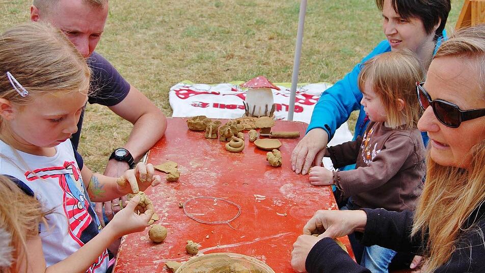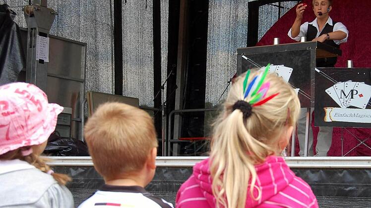 Über 10 000 Besucher Mit solchen Überlegungen plagten sich die wieder weit über 10 000 Besucher an den sechs Tagen nicht herum. Viel Platz für ein Vielerlei an Aktivitäten und viel Auslauf für die Kinder ließen die Eltern entspannt herumsitzen und sich mit Freunden unterhalten, während ihre Jüngsten nach Lust und Laune beschäftigt waren. Es gab wohl nichts, was es nicht gab: Ob man im Aktivspielplatz-Zelt mit der Laubsäge arbeiten, beim Waldkindergarten mit Knetmasse lustige Figuren formen oder im anderen Zelt Marmeladengläser bemalen wollte, ob man auf der neuen Luftkissen-Landschaft toben, Bridge und Schach lernen oder mit Laufrad oder Holzstelzen sich fortbewegen wollte - es gab wohl für jeden, ob jung oder alt, das passende Angebot. Wer selbst nicht aktiv sein mochte, konnte sich auf der großen Showbühne vom Zauberer oder von Tanz- und Musikvorführungen unterhalten lassen.