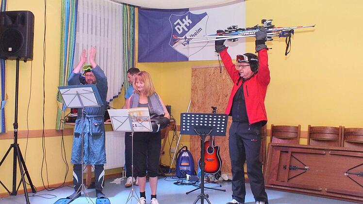 Mit viel flotter Musik wussten die Triathleten Thomas Reuß, Lothar Hein und Claudia Beck das Dorfgeschehen zu karikieren. Natürlich machte man sich auch über die Belange der Stadt Gedanken und Lothar Hein, der das "lustige Rentnerleben" sehr schätzt, gab eine haarsträubende Idee zum Besten, wie man das Wasser im Münnerstädter Schwimmbad kostengünstig erwärmen könnte. Doch auch Ortssprecher Klaus Schebler, der anstatt "Neuer Wege" anzulegen nun für"tiefe Gräben" im Windheimer Wald sorgt, bekam den Spott der drei ab.