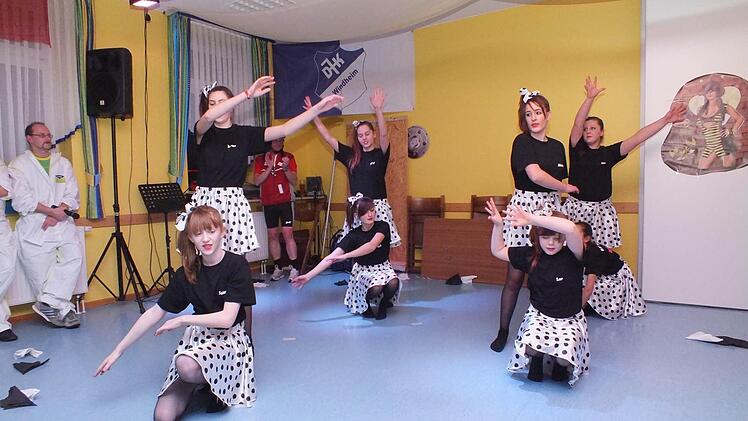 Weiter wirkten mit: Die Dance-Girls, die von Theresia Beck und Daniela Müller trainiert worden waren, eröffneten den Abend mit einem flotten Tanz. Die Tanzgruppe Winner Madels unter Hannah Hopf und Melanie Kirchner sorgten für viel Stimmung. Am Ende tanzten auch die Zuschauer ausgelassen mit. Einen Gastauftritt hatte die Garde Garitz, die dem Publikum mit ihrem Tanz einheizte. Das Männerballett, das von Katrin Dudek und Andrea Nöth trainiert wird, erschien in Nonnentracht. Doch auch im knappen Trainingsanzug sorgten sie für ausgelassene Stimmung.