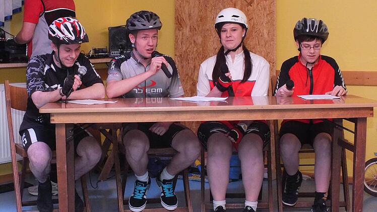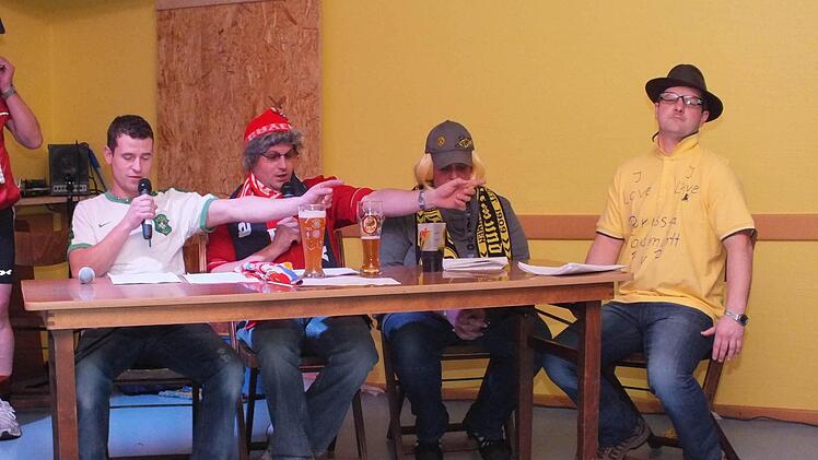 Sport und Spott Die Moderation haben auch in diesem Jahr wieder Andrea Nöth und Jürgen Meder übernommen. Getreu dem Thema des Abends "Es lebe der Spo(r)(t)t" hatten sich Jessica, Fabian, Philipp Bötsch und Benjamin Gernert als Fahrradfahrer verkleidet, und boten mit ihren Witzen Spaß am laufenden Band. Natürlich bekamen auch die Windheimer Vereine ordentlich ihr Fett weg.