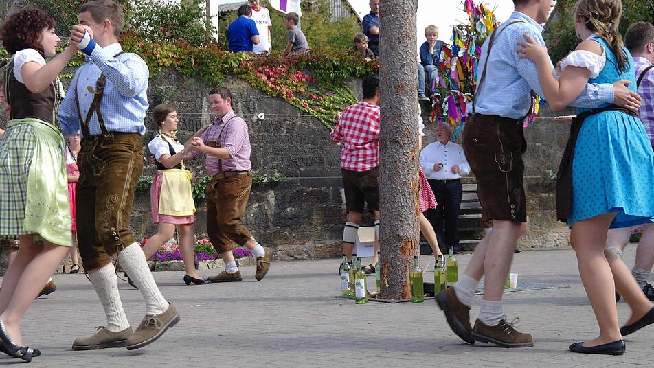 Training macht sich bezahlt Acht Paare waren vorher in Dirndl beziehungsweise in Lederhosen um den Plo-Baum getanzt. "Jetzt können die richtig tanzen" , sagte Patricia Kessler, Mutter von Tim Kessler und im Altkirmesverein tätig. Bevor sich Tanztrainer Willi Roth der Kirmes-Tänze angenommen hatte, seien die Paare "eher um den Baum gestolpert".