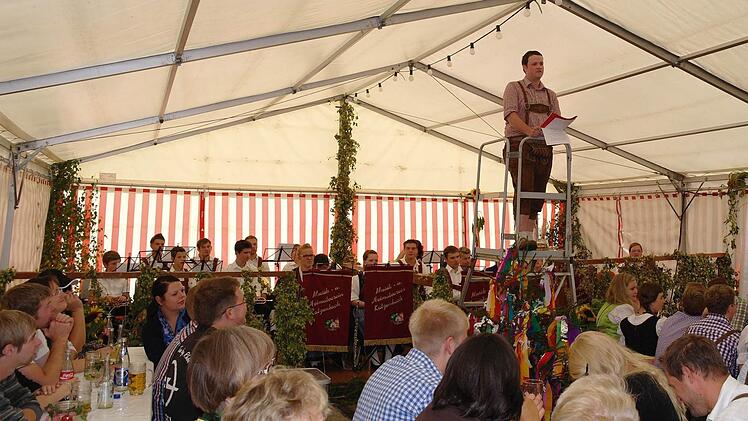Der Baum wurde traditionsgemäß erst am Samstag geschlagen, schon im Juli dagegen waren das Geschirrmobil, das Zelt und die Getränke bestellt worden. Seit August übten die Paare ihre Tänze ein - und vor vier Wochen begannen Tim Kessler, Gudrun Alexander und Sabine Heinle, den Kirmesspruch zu dichten. Aber eigentlich ist nach der Kirmes vor der Kirmes. Die vergangenen 365 Tage hatte Tim Kessler seine Augen und vor allem seine Ohren überall. Was immer einem Dorfbewohner passierte, wer auch immer "vom Wech is abgekomme" und wer mal zu tief ins Glas geschaut hatte, Tim Kessler sammelte und sortierte alle Anekdoten.