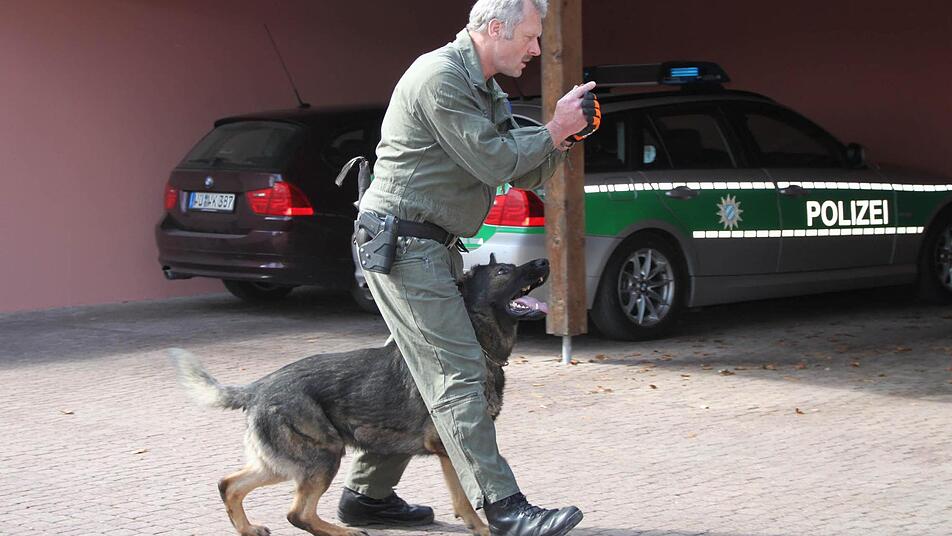 Michael Eckert von den Operativen Ergänzungsdiensten ist extra aus Schweinfurt gekommen, um den Mädchen den Einsatz eines Polizeihundes vorzuführen. Dazu versteckt er eine Portion Rauschgift in einer Garage. Gerome rennt los, bellt, jagt wieder zurück zu seinem Herrchen. Natürlich hat er die "Beute" schon erschnüffelt.