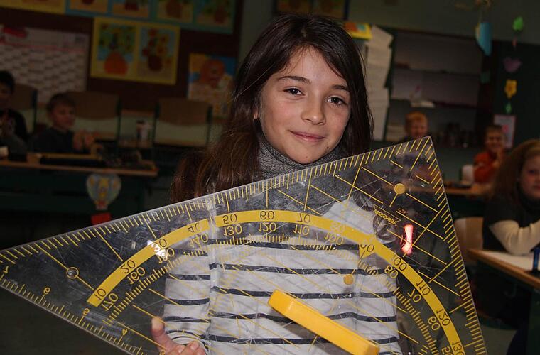 Die Schülerin aus der Klasse 4b von der Einhard-Schule gewann heuer die Unterfränkische Mathematik-Meisterschaft und behauptete sich als Siegerin gegen 7272 Schüler aus 224 Schulen. "Mir machen solche Aufgaben einfach Spaß", verrät die Gewinnerin, die jetzt gerade ihren 10. Geburtstag gefeiert hat. Mutter Antje bestätigt: "Schon in der ersten Klasse hat Giulia die Mathe-Aufgaben ihres älteren Bruders aus der vierten Klasse gelöst". Nicht nur die Mutter ist stolz auf das Rechengenie Giulia, sondern auch Klassenlehrerin Michaela Schmitt und Schulleiter Bernd Czelustek sowie die übrigen Klassenkameraden von der 4b.