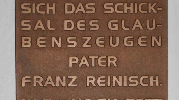 In der der Stadtpfarrkirche erinnert eine Plakette an Pater Franz Reinisch, dessen Seligsprechungsver- fahren angelaufen ist.