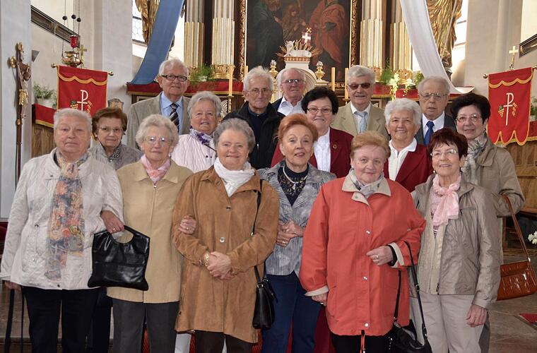 Erstkommunion. Davon leben noch 42, weiß Siegmund May aus Wollbach, der gemeinsam mit drei Damen das gestrige Treffen organisiert hat. Vom Jahrgang 1946/ 47 feierten 1956 39 Jungen und Mädchen der Pfarrei Erstkommunion. "Neun davon sind inzwischen verstorben, 26 hatten sich für den Pfingstmontag angemeldet", so Georg Rottenberger, der die Feierlichkeiten zum Jubiläum vorbereitet hat.